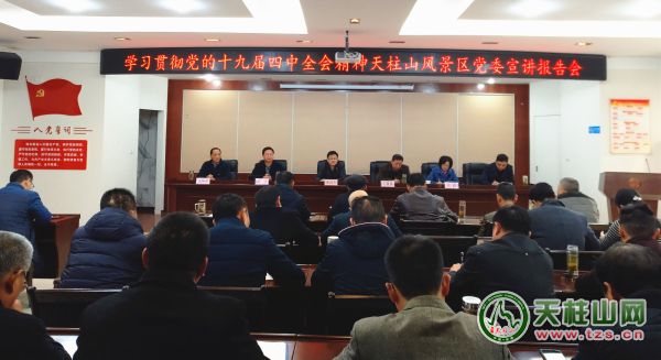 為深入學(xué)習(xí)貫徹黨的十九屆四中全會(huì)精神,12月13日下午,天柱山風(fēng)景區(qū)黨委舉行學(xué)習(xí)貫徹黨的十九屆四中全會(huì)精神天柱山風(fēng)景區(qū)黨委宣講報(bào)告會(huì)。市委常委、天管會(huì)副主任涂高生作宣講報(bào)告,風(fēng)景區(qū)紀(jì)委書(shū)記江霞主持報(bào)告會(huì),管委會(huì)領(lǐng)導(dǎo)班子成員,管委會(huì)機(jī)關(guān)全體干部職工,度假區(qū)管委會(huì)機(jī)關(guān)全體干部職工,各黨支部主要負(fù)責(zé)人,旅游公司班子成員、公司下屬二級(jí)機(jī)構(gòu)及經(jīng)營(yíng)單位主要負(fù)責(zé)人,近五年內(nèi)退休的老同志,已退休的副縣級(jí)老同志參加會(huì)議。