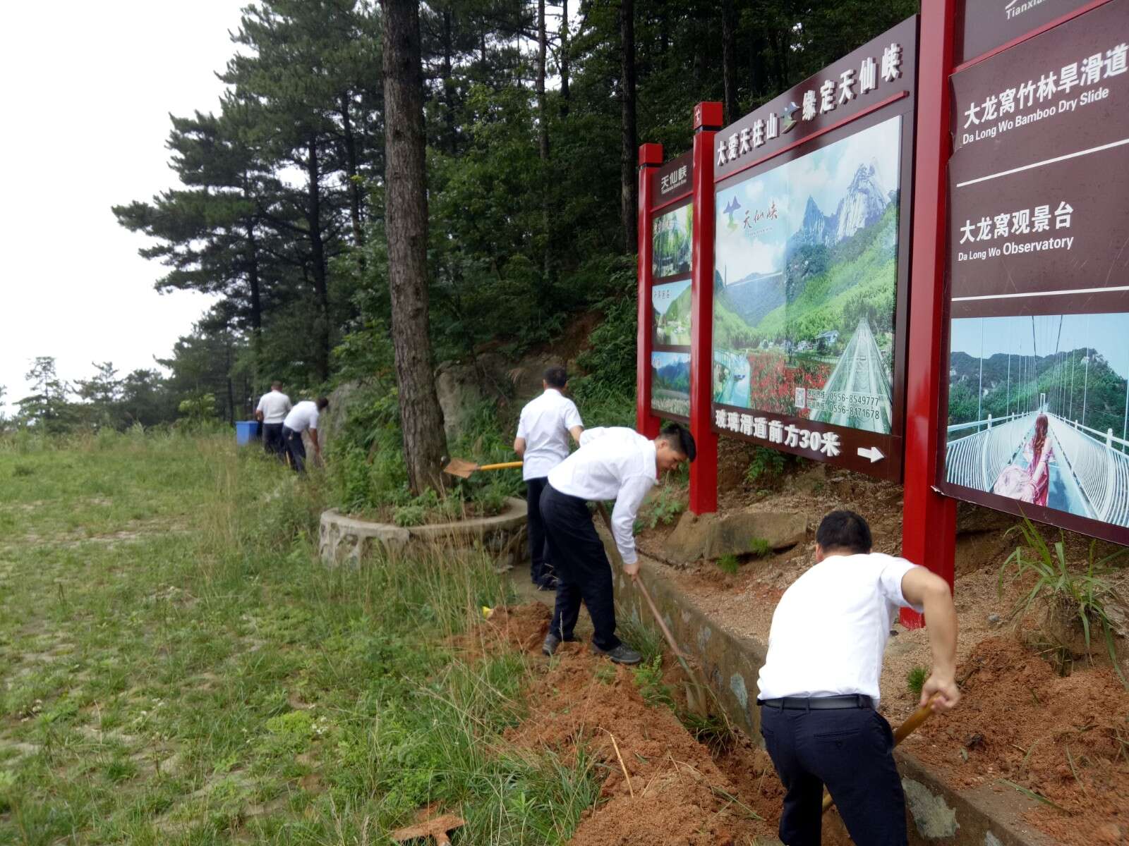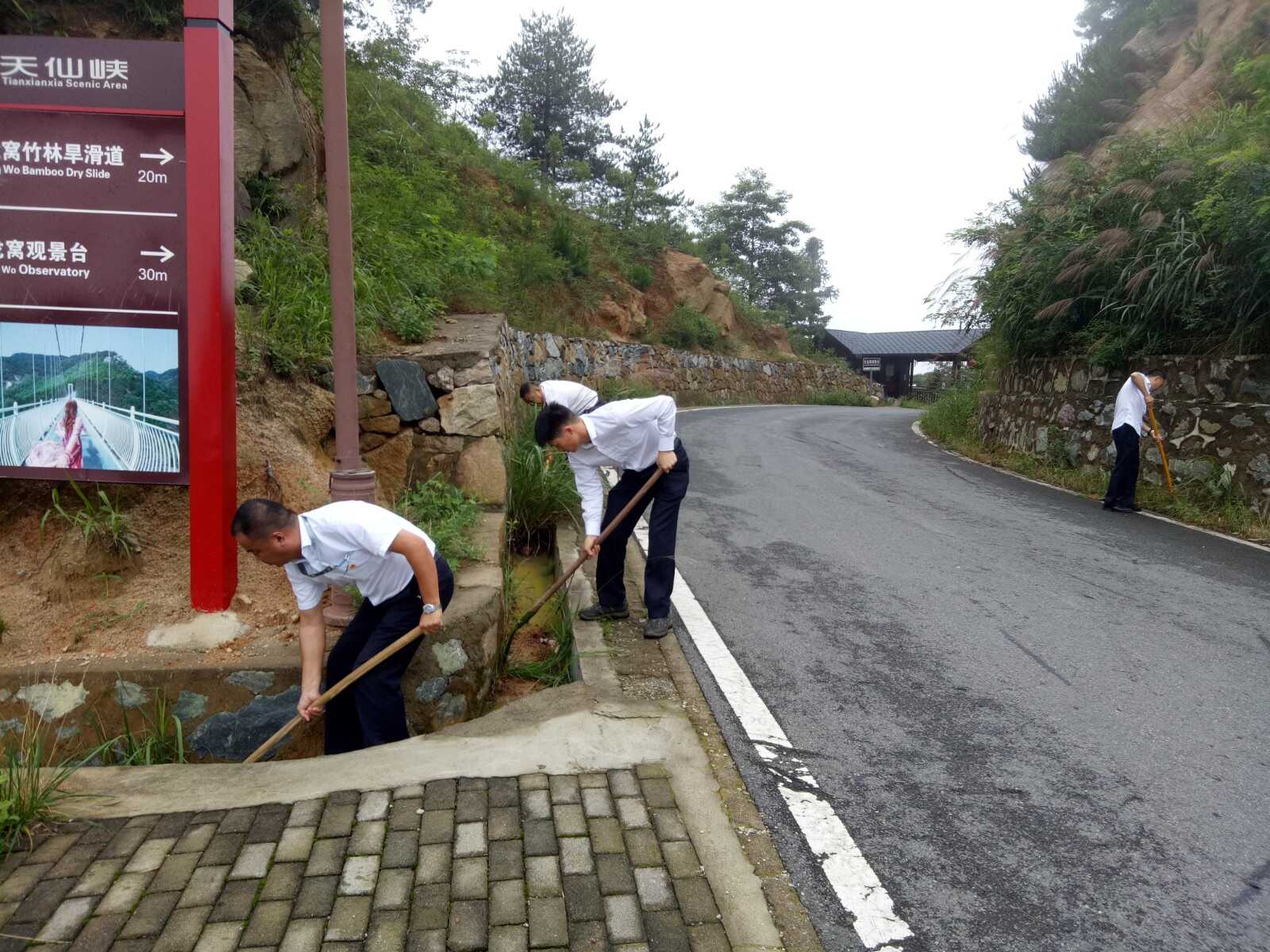 ? ??進入汛期以來,按照風(fēng)景區(qū)黨委的統(tǒng)一部署,主峰景區(qū)支部統(tǒng)籌安排,積極推進,認真落實景區(qū)防汛各項工作,7月14日,結(jié)合支部“黨員活動日”,主峰景區(qū)支部組織黨員對大龍窩景區(qū)周邊附屬設(shè)施、停車場、旅游公路等多處排水溝進行了清理維護,徹底清除了排水溝內(nèi)的淤泥、雜草等,有效改善了汛期排澇功能,及時消除安全隱患,進一步確保了汛期景區(qū)旅游安全。