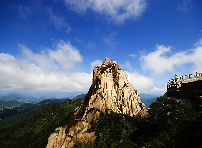 第六次游天柱山,45峰峰峰不同,17嶺嶺貌各異。感覺有三。彰顯神韻的還是天柱峰,峰頂上偌大的一堆巖石如柱、如錐,巍然聳立,直插云霄,其雄偉令歷代文人墨客驚嘆不已。唐代詩人白居易來此稱贊道:“天柱一峰擎日月,洞門千仞鎖云雷。”把天柱山雄偉瑰麗的景色,形象生動地表現(xiàn)了出來,天柱山也因此而得名。