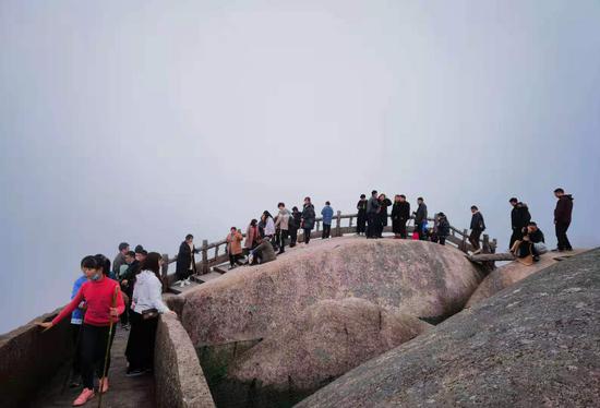 初春的天柱山秀中藏媚,景色宜人。天柱峰猶抱琵琶半遮面,時(shí)而被云霧籠罩,時(shí)而露出偉岸真容,景象萬(wàn)千,美輪美奐。中午時(shí)分,更是驚現(xiàn)“佛光”奇觀,游客紛紛發(fā)出歡呼,共同祝福偉大的祖國(guó)牛氣沖天、繁榮富強(qiáng)。